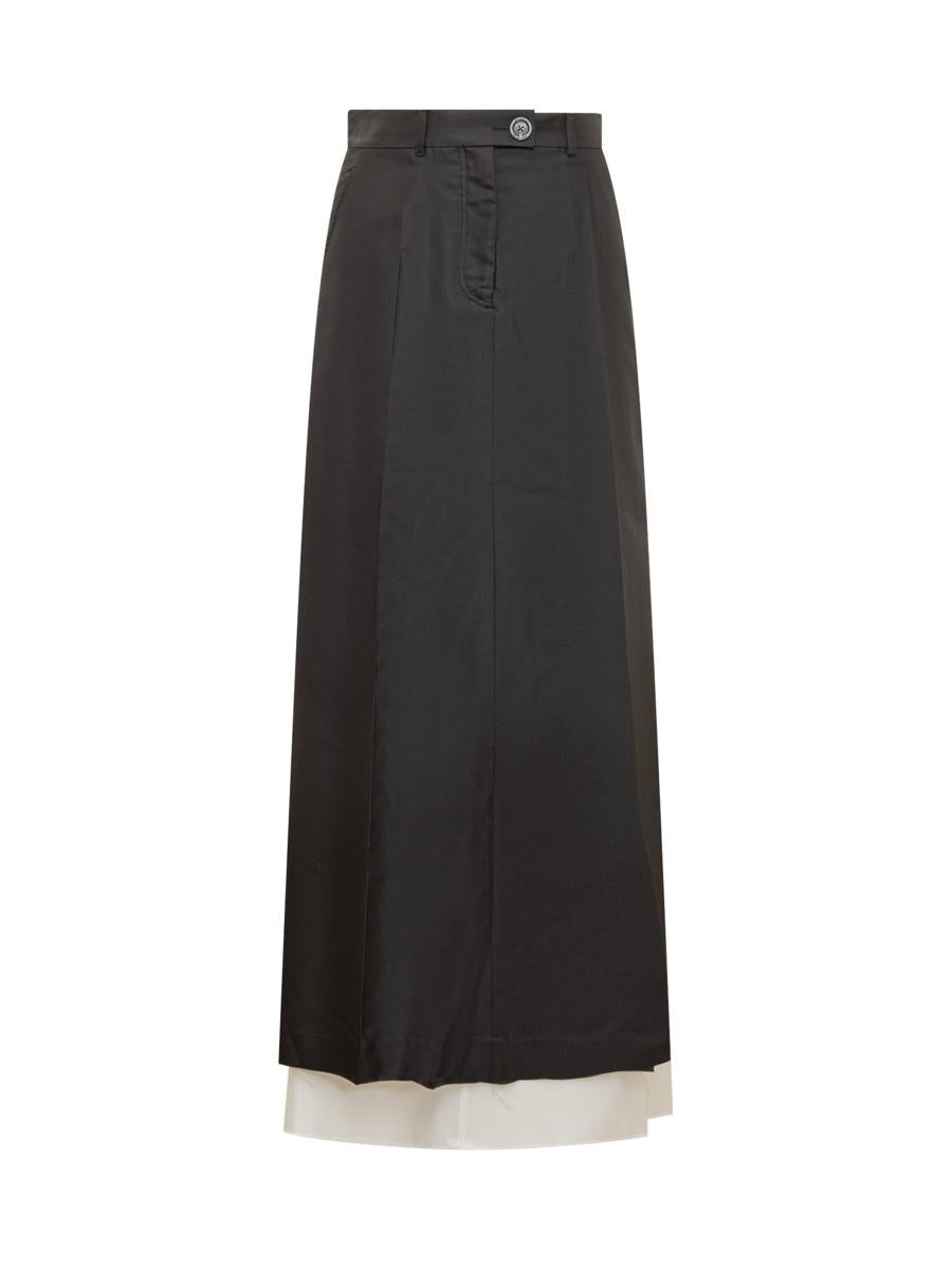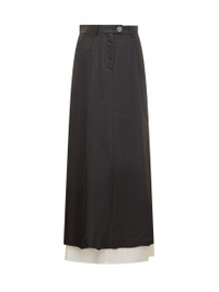 Black maxi skirt. Button and zipper closure. Double fabric at the bottom. Four pockets. Belt loops. Gender: Women Material: OUTSIDE: 100% SILK LINING: 100% VISCOSE Color: BLACK Made in: IT Product ID: PDSS23266SE043 BLACK *Import tax/duty will be calculated at checkout (If applicable)