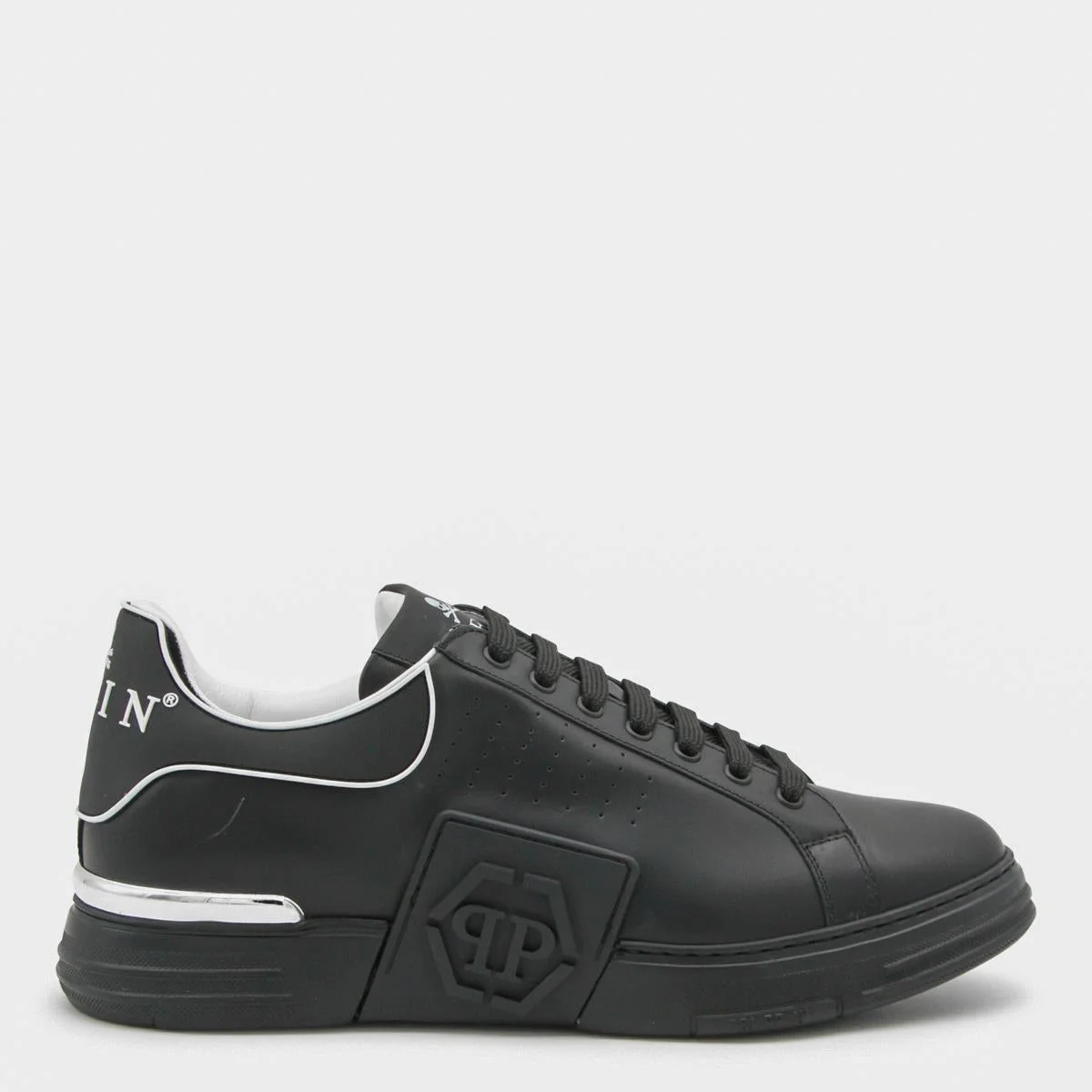 Philipp Plein Black Leather Hexagone Sneakers