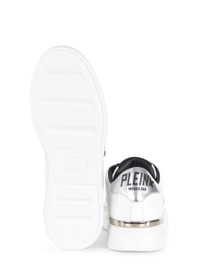 Philipp Plein Sneakers in White leather. Rounded rigid toe. Metal logo applied on the tongue. Laced-up. Silver metal logo on the side. Contrasting lettering logo on the heel. Rear metal reinforcement. Rubber sole. Gender: Men Material: SKIN Color: WHITE Made in: IT Product ID: USC0676PLE075N-02 *Import tax/duty will be calculated at checkout (If applicable)
