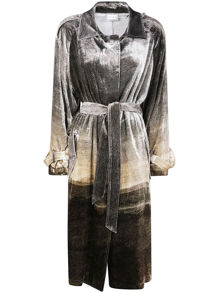landscape-print belted coat