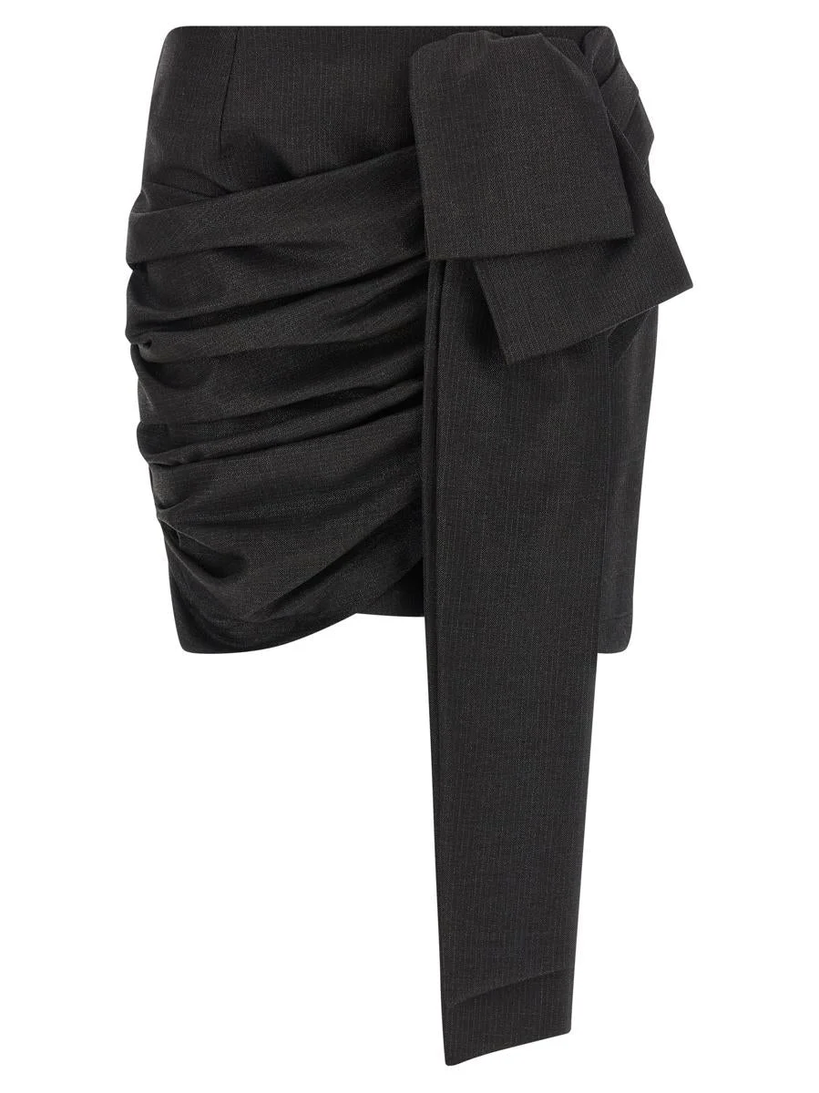 Mini 'Alejandrina' skirt in wool blend canvas worked with thin pinstriped metallic thread, draping and decorative band with front bow, back zip closure, lining Gender: Women Material: 92% WOOL 4% MZ 4% POLYAMIDE Color: Black Made in: Italy Product ID: 106144A305Z99 *Import tax/duty will be calculated at checkout (If applicable)
