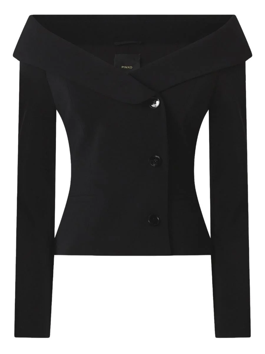 Pinko's Antonina blazer with bardot neckline Gender: Women Material: .98% POLYESTER 2% ELASTANE Color: Black Made in: Italy Product ID: 106132 A304 ANTONINA Z99 *Import tax/duty will be calculated at checkout (If applicable)