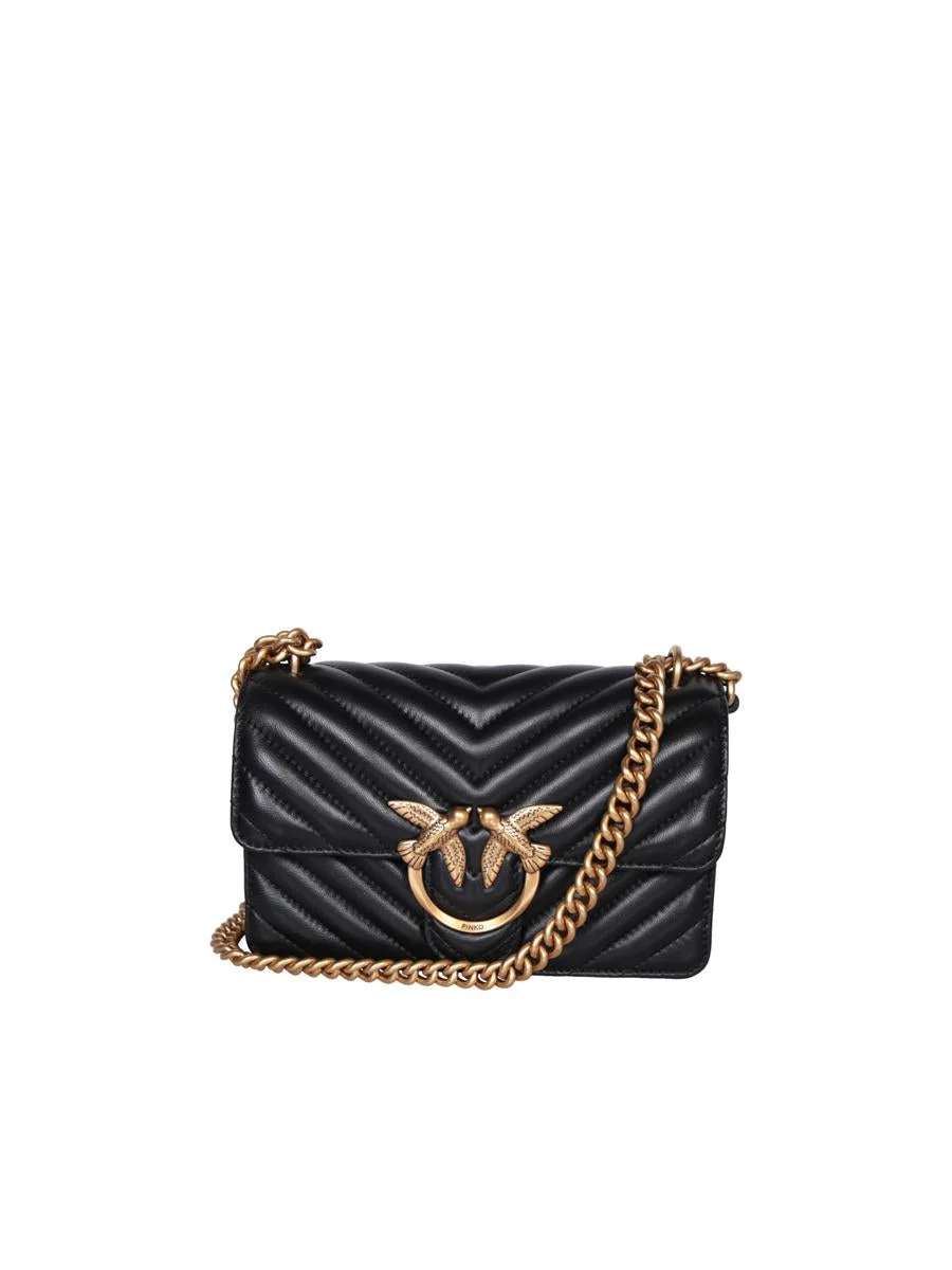 Gold-tone chain strap. Iconic love bird fastening. Quilted texture. PINKO Love One Mini FDC in black leather - Golden chain shoulder strap, front gold-tone metal love bird clasp, elegant quilted design. Gender: Women Material: 100% LEATHER Color: BLACK Made in: Imported Product ID: 100074 A0GK Z99Q *Import tax/duty will be calculated at checkout (If applicable)