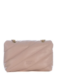 Bag Pinko “Love Classic Puff” in soft nappa with maxi oblique quilting in Powder Pink. Closure with iconic "Love Birds Diamond Cut" buckle in Golden metal, engraved with "Pinko" writing. Interior lined in suede microfibre. Internal zip pocket. Double compartment. Tone-on-tone embroidered logo on the back. Shoulder strap combines leather shoulder strap, Golden metal chain. Measurements Height 19cm, Width 11cm, Length 28cm Gender: Women Material: LEATHER Color: POWDER PINK Made in: IMPORTED Product ID: 100038A0F2-O81Q *Import tax/duty will be calculated at checkout (If applicable)