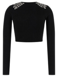 'Big Jim' viscose blend sweater with front sequins and crystal applique, crop model, round neckline, long sleeves Gender: Women Material: 83% VISCOSE, 17% POLYESTER Color: Black Made in: Imported Product ID: 105734A2UTZI1 *Import tax/duty will be calculated at checkout (If applicable)