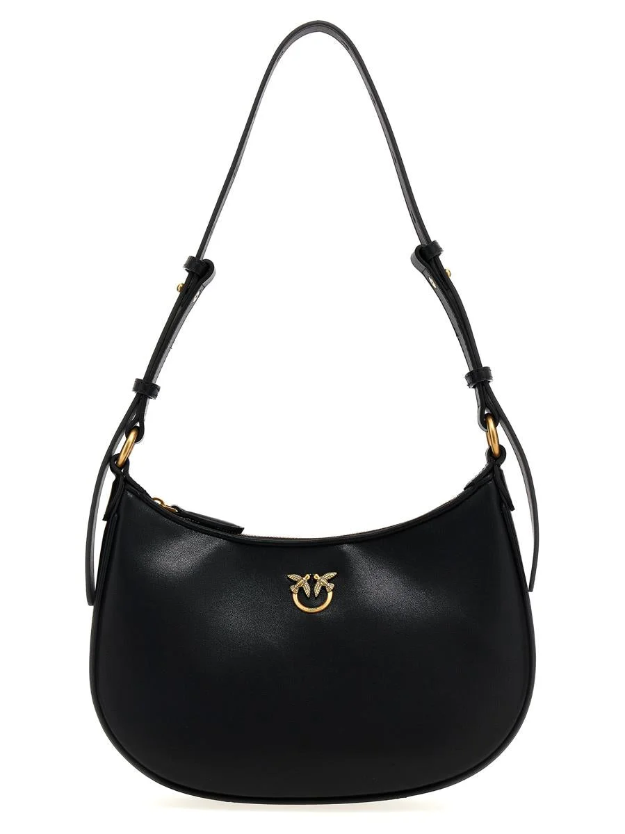 PINKO BLACK SHOULDER BAG WITH LOVE BIRDS DIAMOND CUT DETAIL IN SMOOTH LEATHER WOMAN
