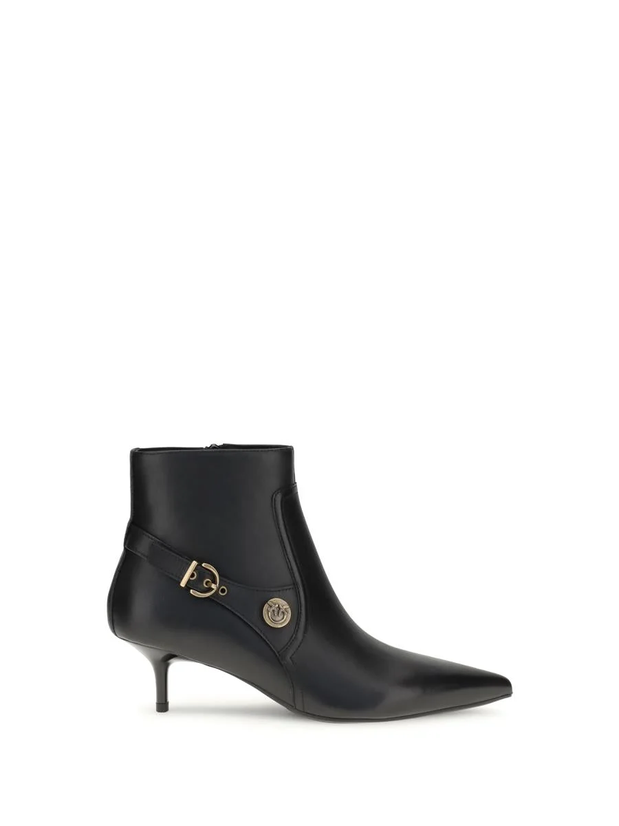 PINKO'S LEATHER ANKLE BOOTS COMBINE ELEGANCE AND COMFORT WITH THEIR REFINED ALMOND TOE AND CONVENIENT SIDE ZIPPER CLOSURE. THE KITTEN HEEL LENDS A FEMININE TOUCH, WHILE THE LOGO BUCKLE ON THE SIDE ADDS A DISTINCTIVE DETAIL THAT COMPLETES THE DESIGN. SHOES IT Gender: Women Material: CALF LEATHER BOS TAURUS Color: Black Made in: Imported Product ID: SD0367P087Z99_BLACK *Import tax/duty will be calculated at checkout (If applicable)
