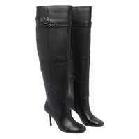 KNEE-HIGH NAPPA LEATHER BOOTS WITH HEEL AND STRAP