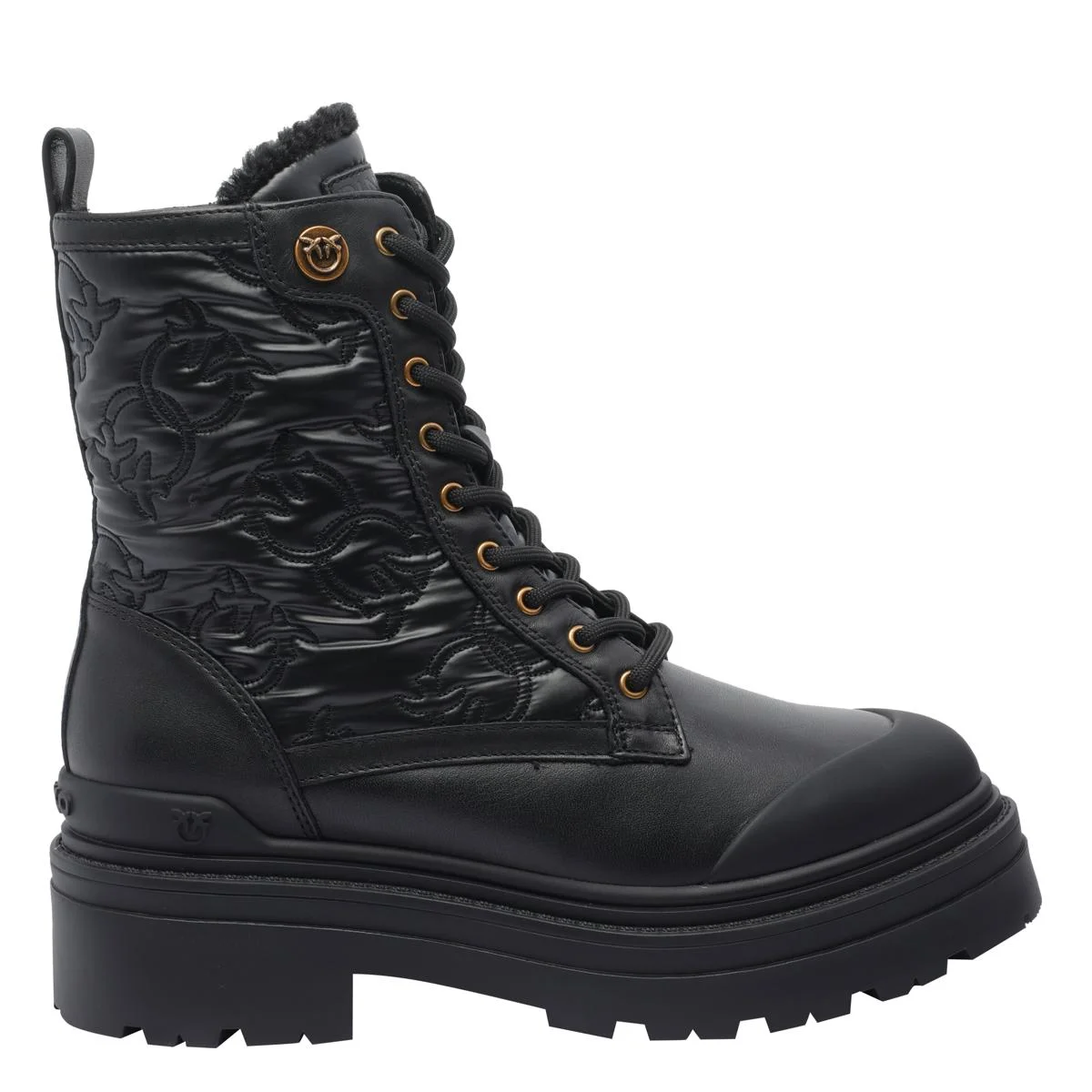 QUILTED LEATHER COMBAT BOOTS WITH LOVE BIRDS LOGO