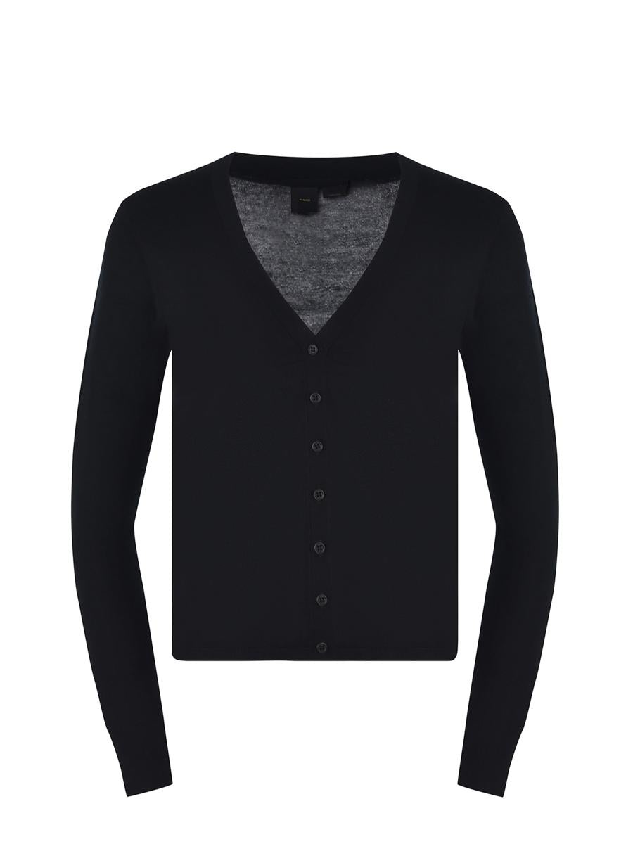 Cardigan Pinko "Gradazione" made of extra-fine wool in Black. Long sleeves. V-neck. Front button closure. Regular fit. Gender: Women Material: 100% WOOL Color: Black Made in: IMPORTED Product ID: 103941-A229Z99 *Import tax/duty will be calculated at checkout (If applicable)