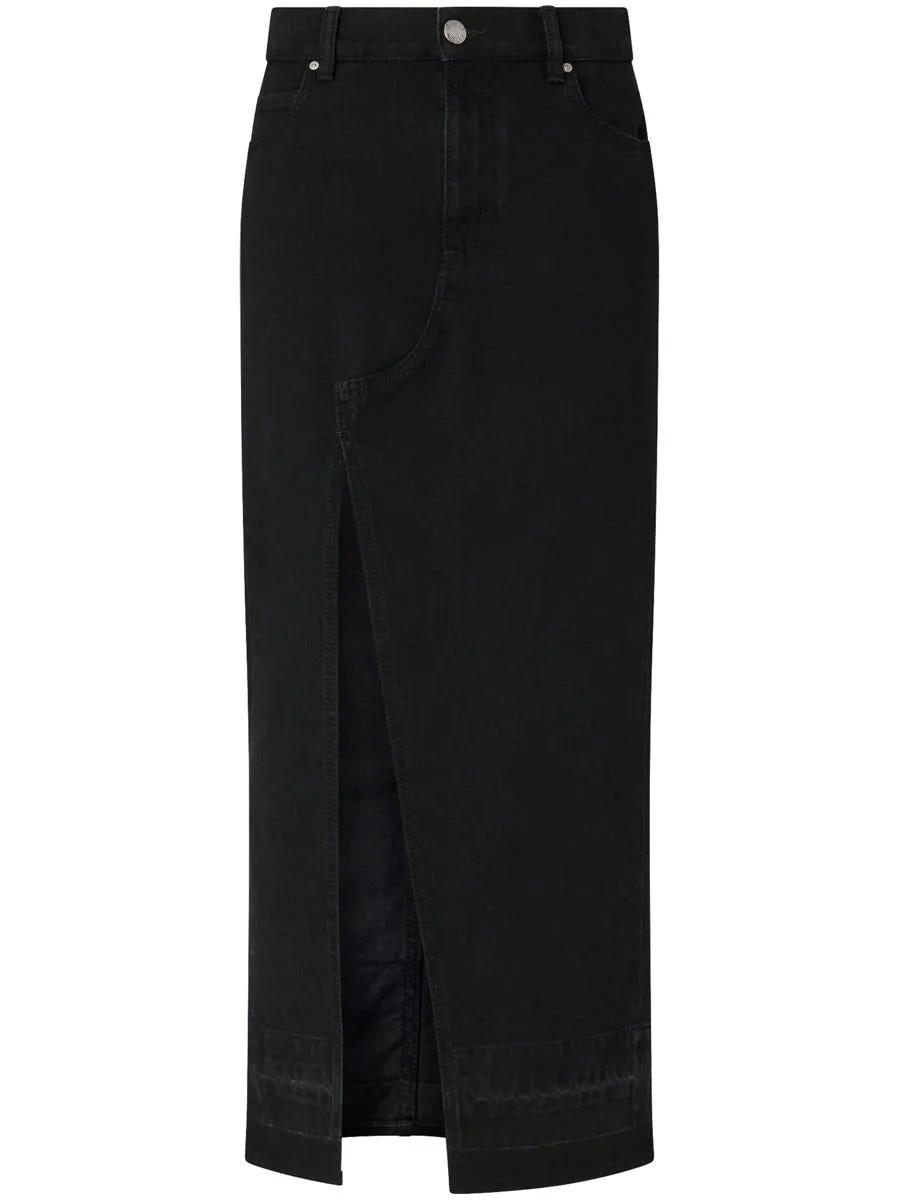 LONG SKIRT IN BLACK DENIM WITH SLIT