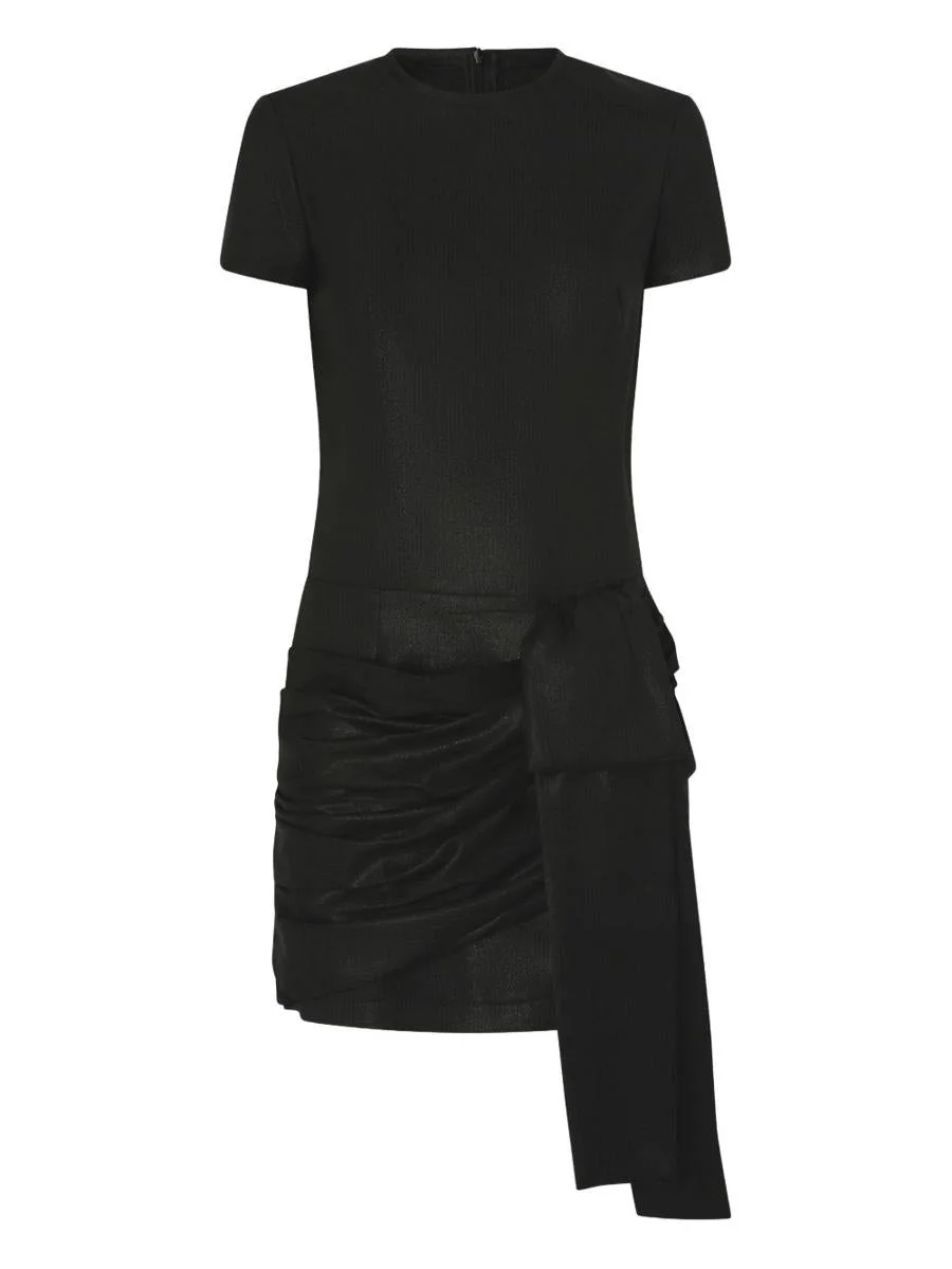 Concealed zip closure on the back Crew neck; Short sleeves Knotted sash at the waist Pinstripe effect with metallic thread Draped short skirt Regular fit Color: Black 92% Wool, 4% Metallic Fiber, 4% Nylon Made in Italy Gender: Women Material: 92% WOOL, 4% METALLIC FIBER, 4% NYLON Color: Black Made in: Italy Product ID: 106143A305Z99 *Import tax/duty will be calculated at checkout (If applicable)