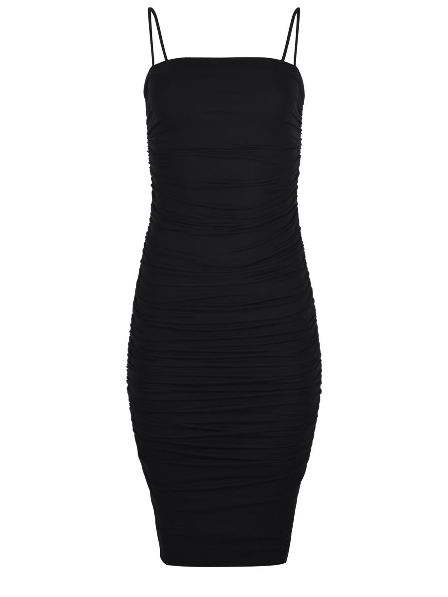 Dress Pinko "Forza" made of black interlock crepe. Thin shoulder straps. Straight neckline at the front and back. Draped along the entire length. Lined. Zip closure, invisible at the center on the back. Lining Gender: Women Material: VISCOSE Color: Black Made in: IT Product ID: 101960-A1L0Z99 *Import tax/duty will be calculated at checkout (If applicable)