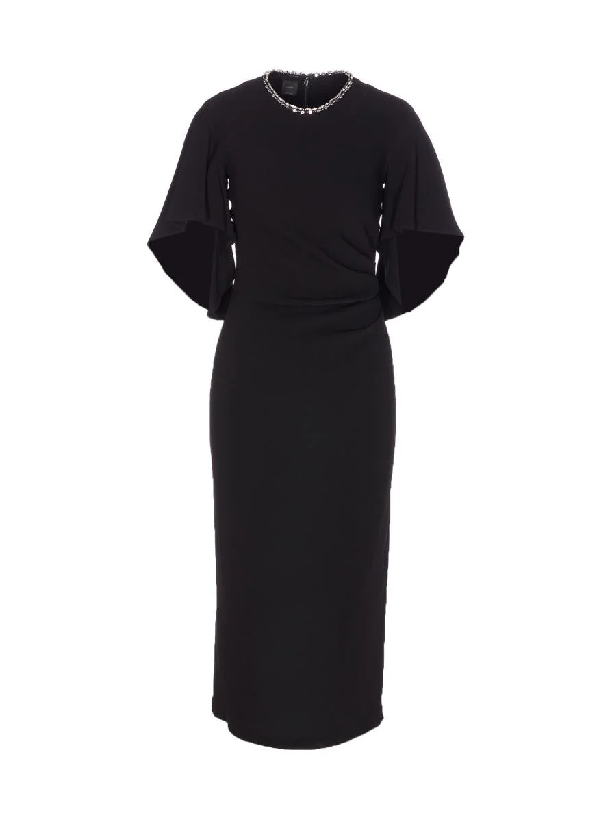 Pinko Black Scopone Dress, Zip And Hook Closure On The Back, Crewneck, Short Sleeves, Application Crystals Details On Collar, Long Model, EU SIZE (IT) Gender: Women Material: 96%VISCOSE, 2%ELASTANE, 100%POLYESTER Color: Black Made in: Italy Product ID: 105583A2Q2Z99 *Import tax/duty will be calculated at checkout (If applicable)