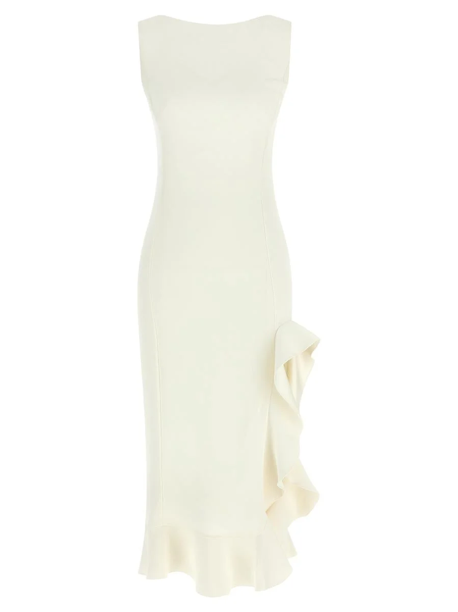 'Flipper' midi dress in stretch viscose with boat neckline, deep round neckline and back zip closure, side split and hem with lasered spiral ruffles and coupled with satin, lining Gender: Women Material: 98% VISCOSE, 2% ELASTANE Color: WHITE Made in: Italy Product ID: 105781A2Q2Z05 *Import tax/duty will be calculated at checkout (If applicable)