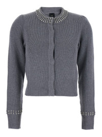Pinko Grey Cardigan With Crystal Embellishments And Logo Patch On The Back In Cashmere Woman