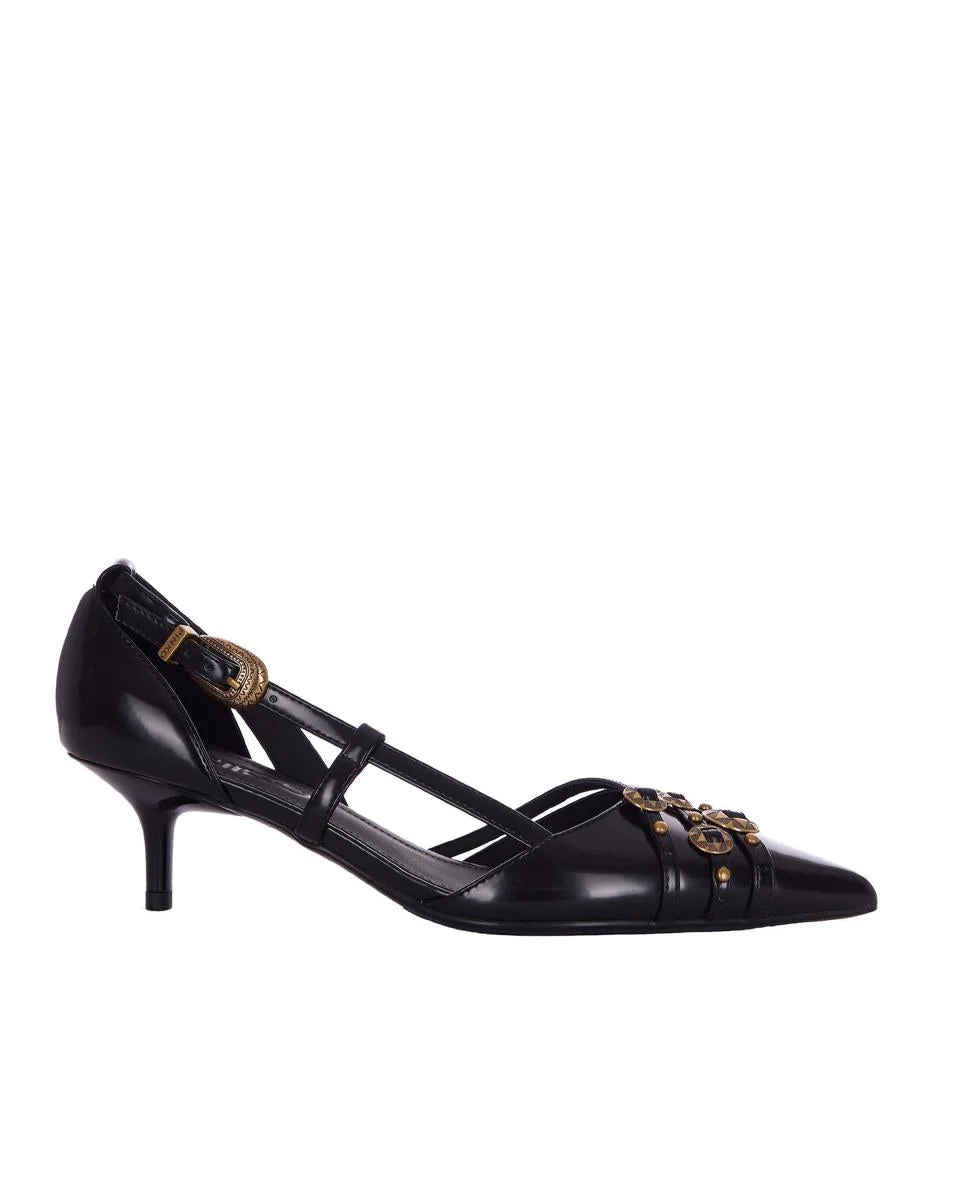strap-detail pumps Highlights - Black - Gold-tone hardware - Strap detailing - Pointed toe - Kitten heel - Buckle fastening Imported Composition Outer: Calf Leather 100% Lining: Calf Leather 100% Sole: Calf Leather 100%