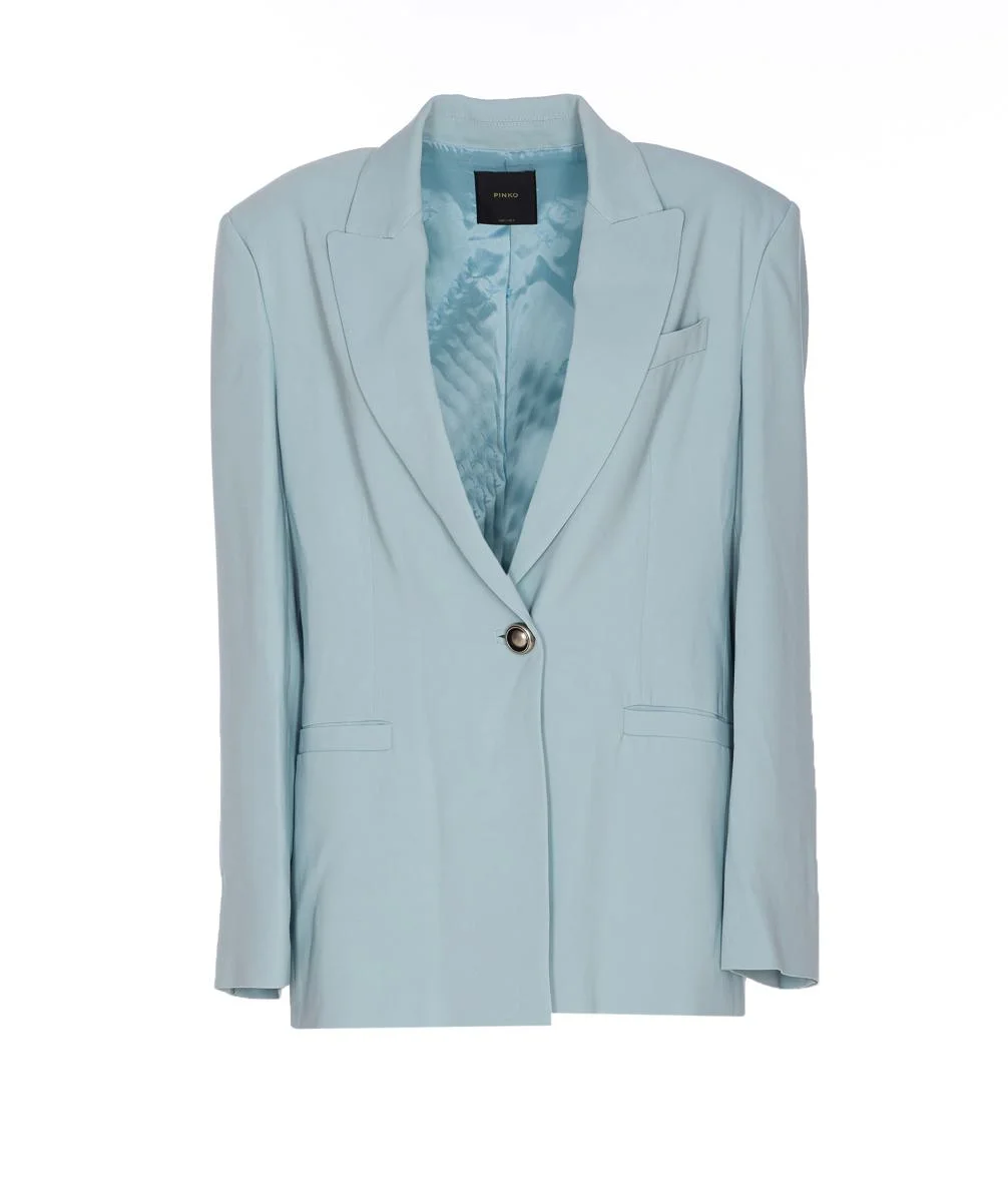 Pinko Light Blue Faraona Jacket, Button Closure, V-Neck, Reverse Detail, Long Slevees, Split On Cuffs, EU SIZE (IT) Gender: Women Material: 96% VISCOSE, 4%ELASTANE, 70%ACETATE, 30% POLYESTER Color: BLUE Made in: Italy Product ID: 104883A213E28 *Import tax/duty will be calculated at checkout (If applicable)