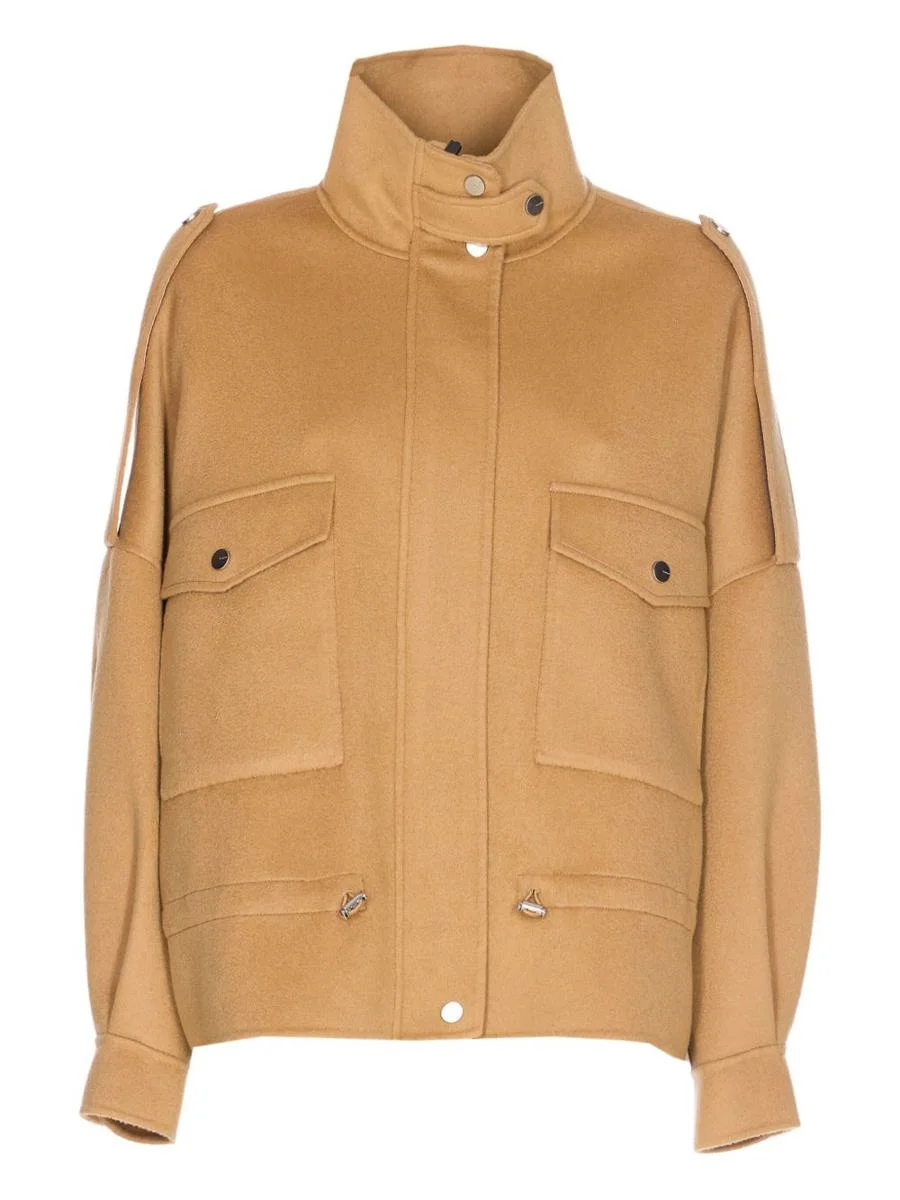 beige zip and press-stud closure flap pockets tabs shoulder long sleeves buttons cuffs Gender: Women Color: Brown Made in: Imported Product ID: CROSTINO105341A2XMCAM *Import tax/duty will be calculated at checkout (If applicable)