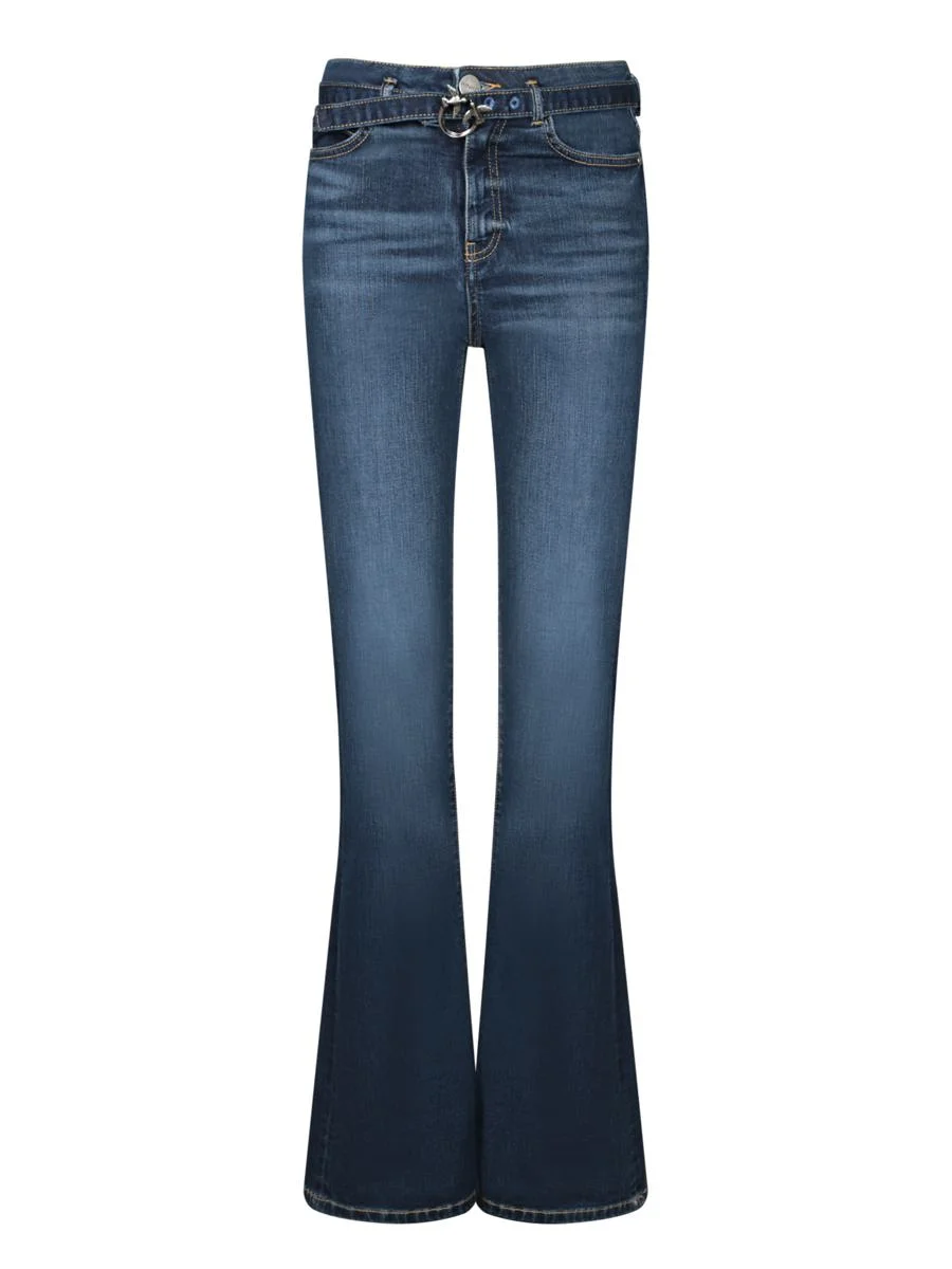 Flared jeans with button and zip closure. Stretch denim fabric. Five pockets. Discover the perfect blend of style and comfort with PINKO's Flora Flare Jeans. The iconic flared cut pairs with stretch denim for a perfect fit that enhances every silhouette. Gender: Women Material: 100% COTTON Color: BLUE Made in: Imported Product ID: 100166 A2RX PJB *Import tax/duty will be calculated at checkout (If applicable)