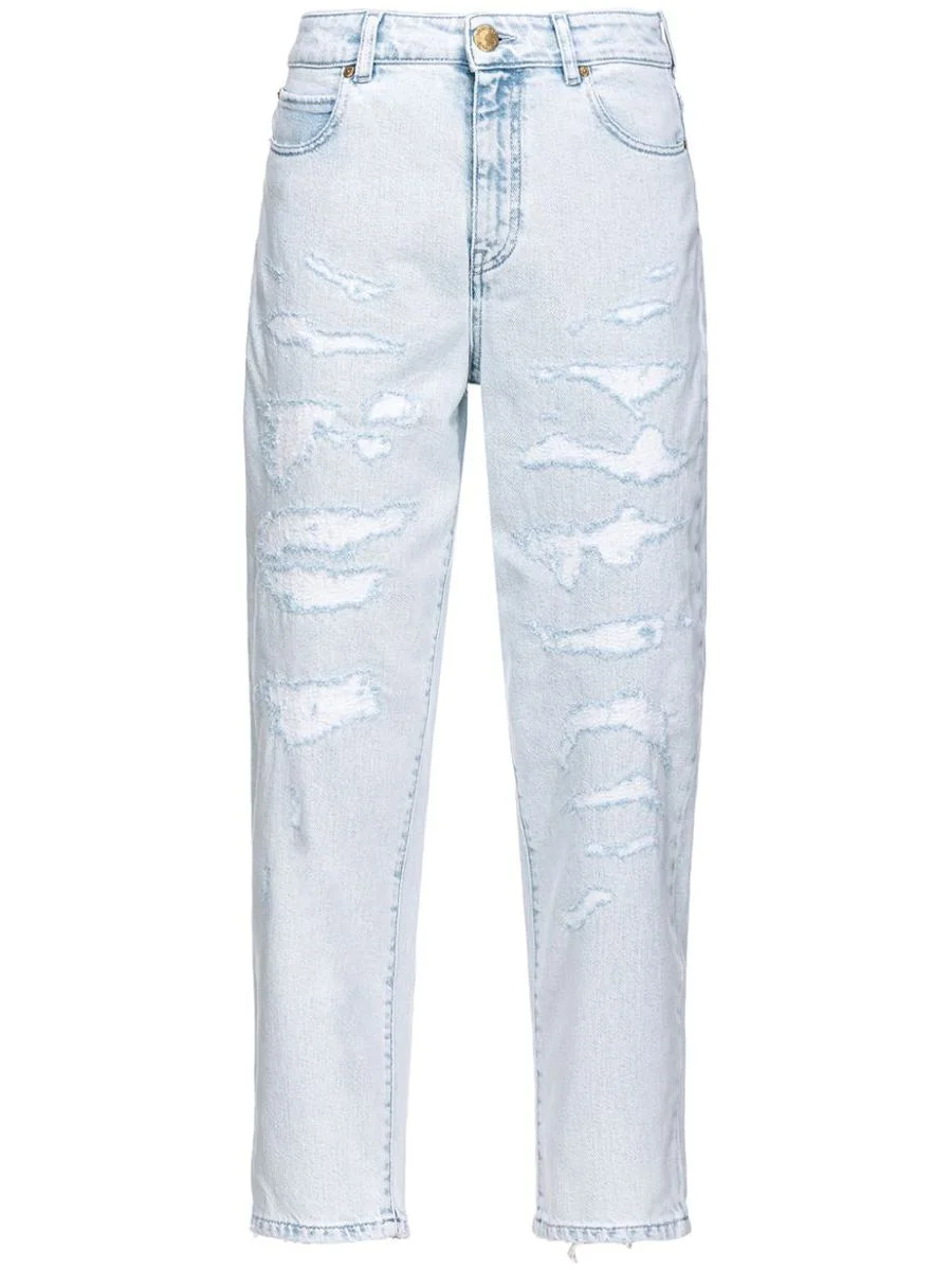 light blue cotton blend denim ripped detailing concealed fly and button fastening straight leg mid-rise classic five pockets straight hem Gender: Women Color: MOONWASH Made in: Imported Product ID: MADDIE100379A1JKPJQ *Import tax/duty will be calculated at checkout (If applicable)