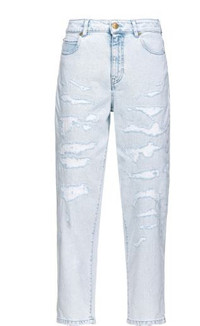 LIGHT-COLOURED MOM-FIT JEANS WITH RIPS