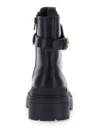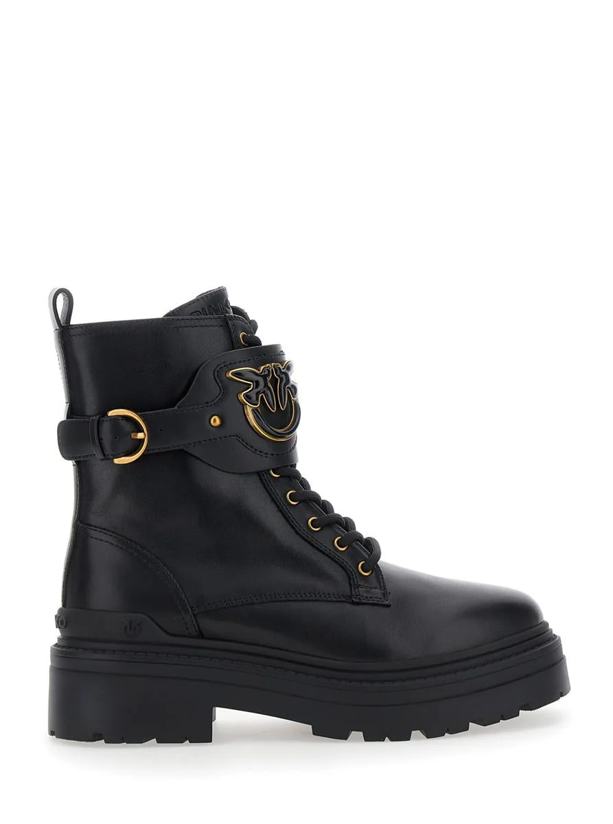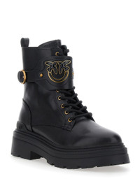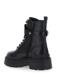 LEATHER COMBAT BOOTS WITH BRANDED FRONT STRAP