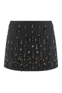 Miniskirt Memory with crystals and pearls Decorated model with sparkling crystals and pearls on the front. 92% Polyester, 6% Viscose, 2% Elastane, 55% Polyester, 45% Viscose, 100% Glass, 100% Steel Gender: Women Material: GLASS Color: Black Made in: Imported Product ID: 105496A2PN_Z99 *Import tax/duty will be calculated at checkout (If applicable)