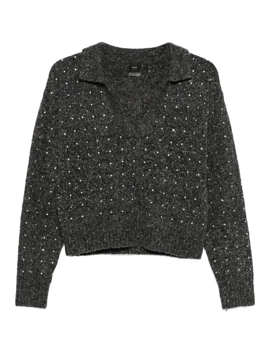 Pinko's grey 'Nibiani' polo-style sweater with rhinestones Gender: Women Material: .60% WOOL 20% POLYAMIDE 20% VISCOSE Color: GREY Made in: Imported Product ID: 105684 A2U4 NIBANI IZ9 *Import tax/duty will be calculated at checkout (If applicable)