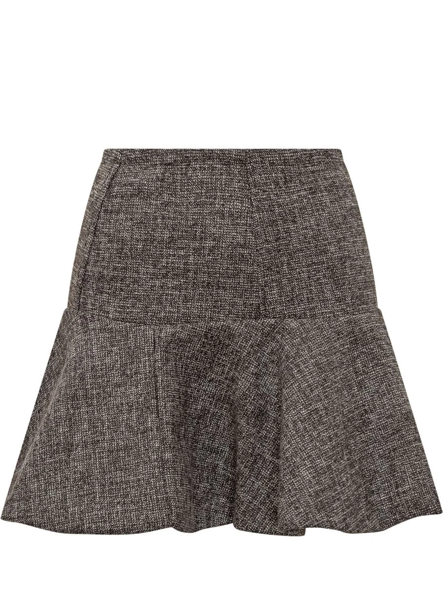 Pinko Hot Dogs Skirt Short skirt in gray melange fabric with ruffles on the bottom. Gender: Women Material: OUTSIDE:40% COTTON, 32% POLYESTER, 19% ACRYLIC, 9% WOOLLINING:67% ACETATE, 33% POLYESTER Color: BROWN Made in: Italy Product ID: 105569A2QX ZM7 *Import tax/duty will be calculated at checkout (If applicable)