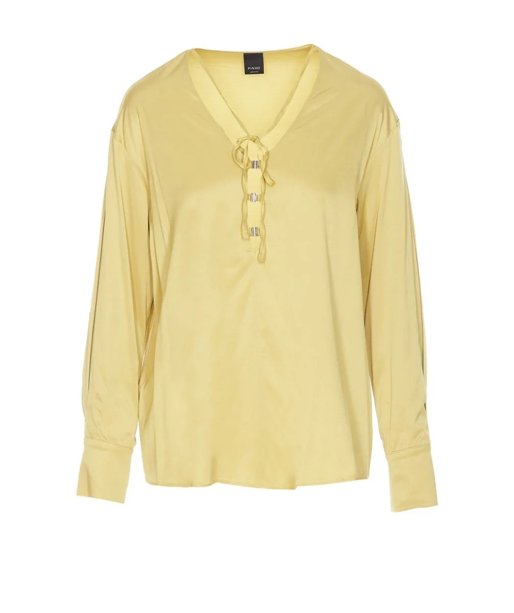 Pinko Senape Fuoco Dress, Hook Closure On The Front, Crewneck, Long Sleeves, Laces Details, Button Closure On Cuffs, EU SIZE (IT) Gender: Women Material: 98% VISCOSE, 2%ELASTANE Color: YELLOW Made in: IT Product ID: 105014A2GDT09 *Import tax/duty will be calculated at checkout (If applicable)