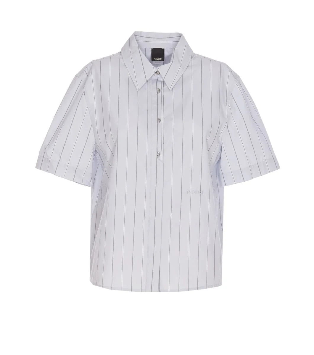 Pinko Grey Innuendo Shirt With Frontal Buttons Closure, Short Sleeves, Sttriped, Embroidered Logo On The Front, EU SIZE (IT) Gender: Women Material: 100% COTTON Color: WHITE Made in: TN Product ID: 104779A2FHIZZ *Import tax/duty will be calculated at checkout (If applicable)