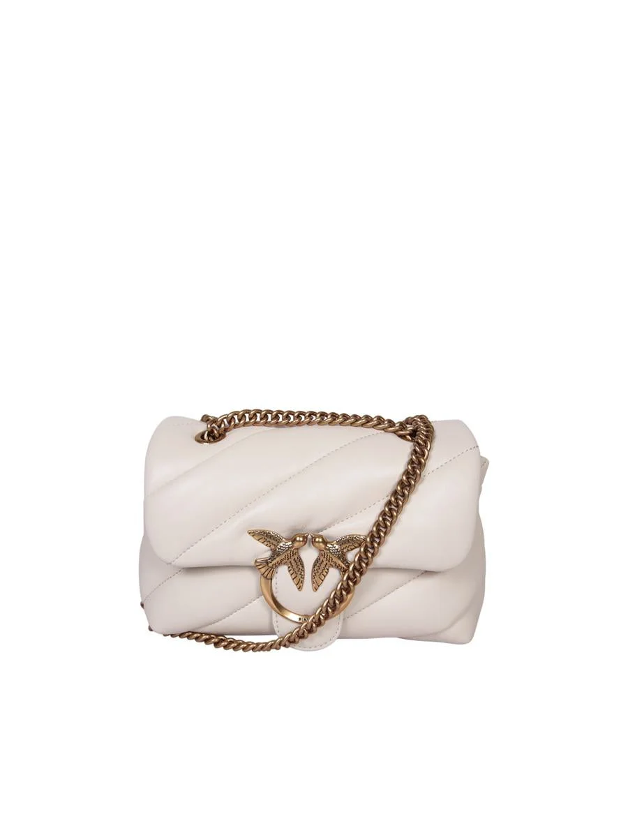 Quilted shoulder bag from PINKO Signature Love Birds buckle Antique-effect hardware Quilted Chain-link shoulder strap Foldover top Magnetic fastening Main compartment Tasca interna con zip Color: white Height: 13 cm Depth: 4 cm Material: 100% Calf Leather Gender: Women Color: WHITE Made in: Imported Product ID: 100039 A0F2 Z14Q *Import tax/duty will be calculated at checkout (If applicable)