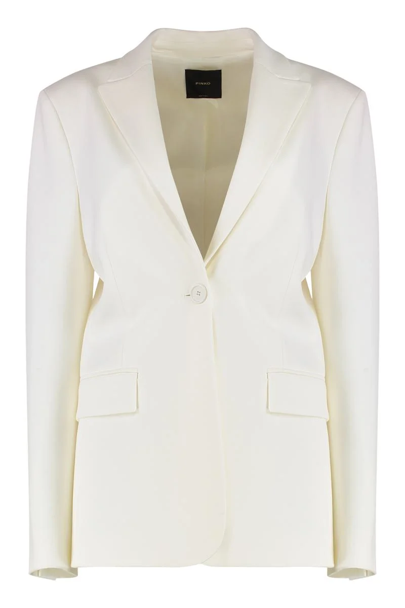 Single-button blazer Blazer jacket with a slim fit made of stretch technical viscose fabric. The garment is finished with details of tailored taste, such as the pleats that accompany and enhance the figure, and with classic elements such as the shawl collar and the flap pockets. 67% Viscose, 28% Polyamide, 5% Elastane, 67% Acetate, 33% Polyester Gender: Women Material: VISCOSE Color: WHITE Made in: Italy Product ID: 104903A24C_Z05 *Import tax/duty will be calculated at checkout (If applicable)