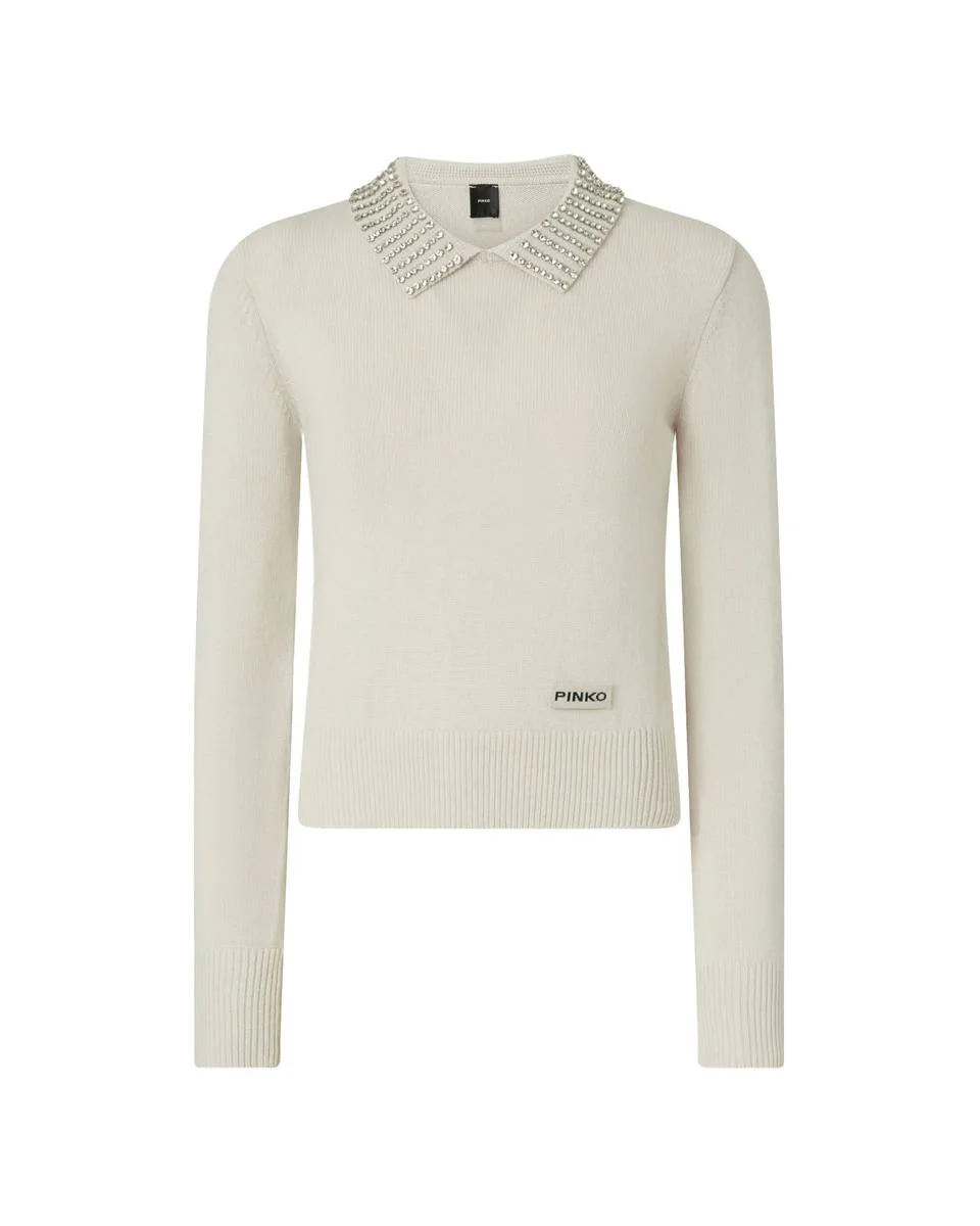 SWEATER WITH COLLAR AND RHINESTONES