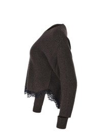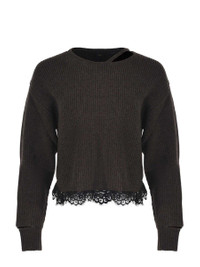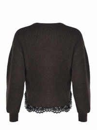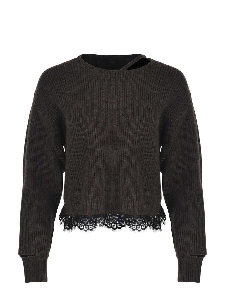 Sweater Pinko "Damigiana" made of a ribbed wool blend in Brown. Crew neck. Long sleeves. Low armhole. Cut-out details on the neck and sleeves. Contrasting black lace on the bottom. II Fabric Gender: Women Material: MISTO LANA Color: BROWN Made in: IMPORTED Product ID: 100720-A238M28 *Import tax/duty will be calculated at checkout (If applicable)