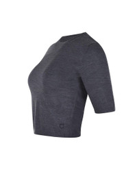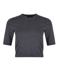 Sweater Pinko "Graspo" made of extra-fine wool in Anthracite Grey. Crew neck. Short sleeves. "Love Birds" logo embroidered tone on tone on the side. Ribbed hem. Design cutout. Gender: Women Material: WOOL Color: GREY Made in: IMPORTED Product ID: 103942-A229I42 *Import tax/duty will be calculated at checkout (If applicable)