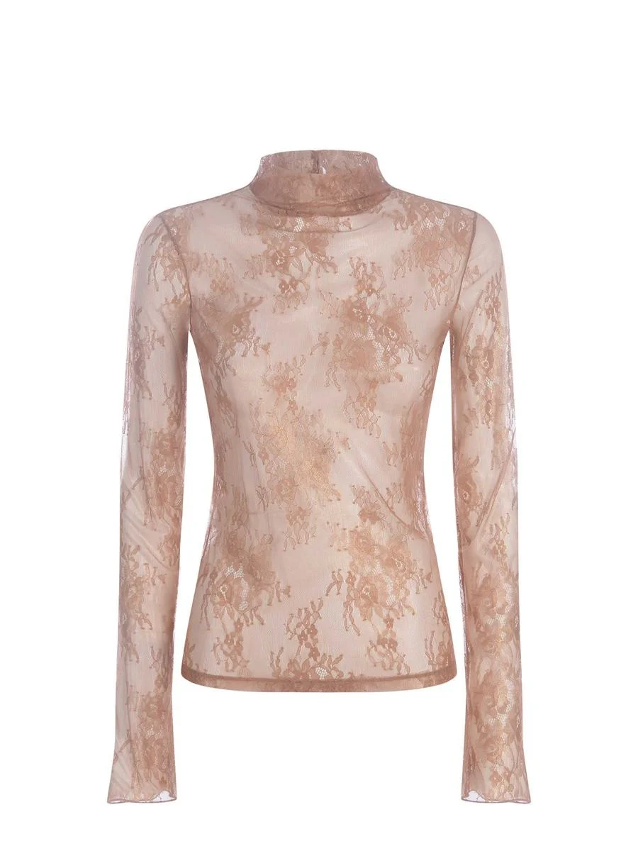 Sweater Pinko "Traminer" made of Bronze stretch laminate lace. High neck. Long sleeves. Invisible zip closure on the back. Gender: Women Material: NYLON Color: BROWN Made in: IT Product ID: 102853A1JW-NH3 *Import tax/duty will be calculated at checkout (If applicable)