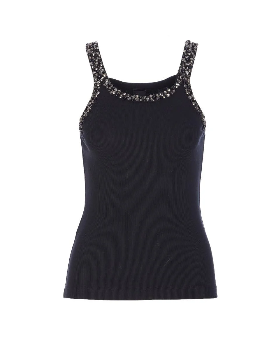 Pinko Black Coriandoli Tank Top, Sleeveless, Application Crystals Details, Logo On The Back, US SIZE Gender: Women Material: 91%COTTON, 9%ELASTANE, 100%GLASS, 100%STEEL Color: Black Made in: Imported Product ID: 104109A2TMZ99 *Import tax/duty will be calculated at checkout (If applicable)