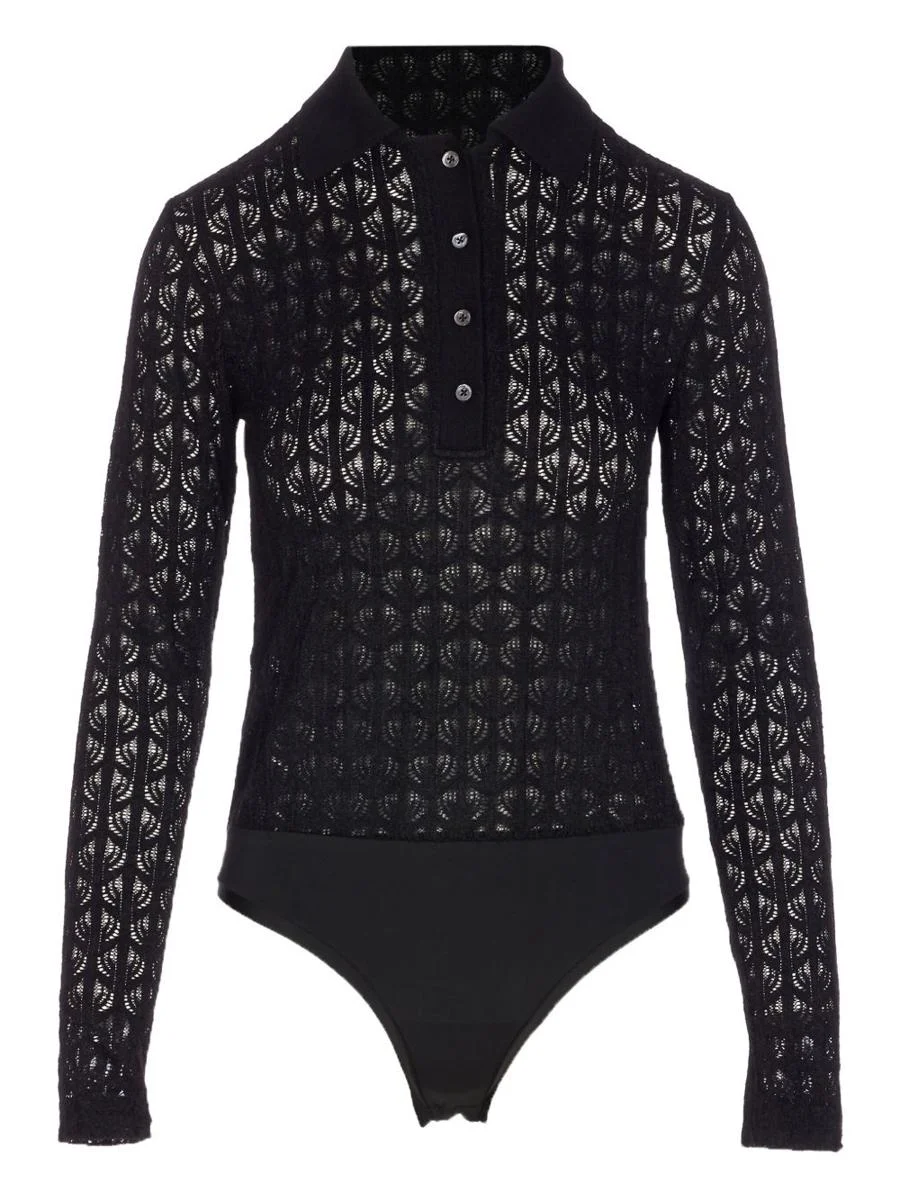 black polo neck button fastening long sleeves open knit lace panel Just a reminder that this piece must be tried on over your own garments. Gender: Women Color: Black Made in: Imported Product ID: YOANA105977A2YIZ99 *Import tax/duty will be calculated at checkout (If applicable)