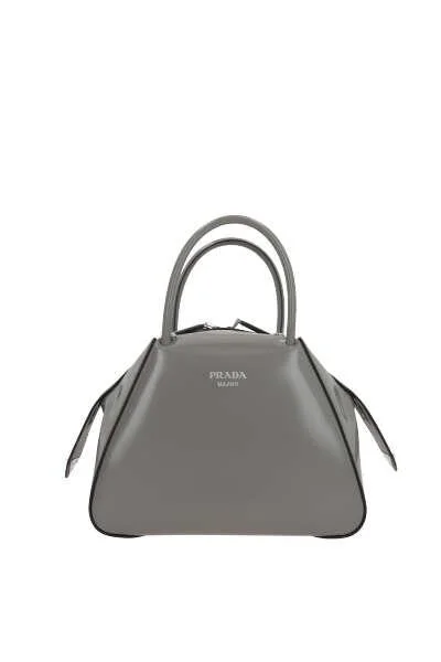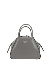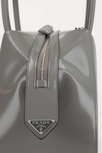 Prada's handbag crafted in grey brushed leather with contrasting trims. It features silver-tone hardware, double-slider zip fastening, double handle and adjustable / removable shoulder strap. Black leather-lined interior with flat pocket. The design is completed by the unmistakable screen-printed lettering logo and the iconic enameled metal triangle logo on sides. Gender: Women Material: 100%CALF Color: MARBLE N Made in: IT Product ID: 1BA366VOOOZO6F03HH *Import tax/duty will be calculated at checkout (If applicable)