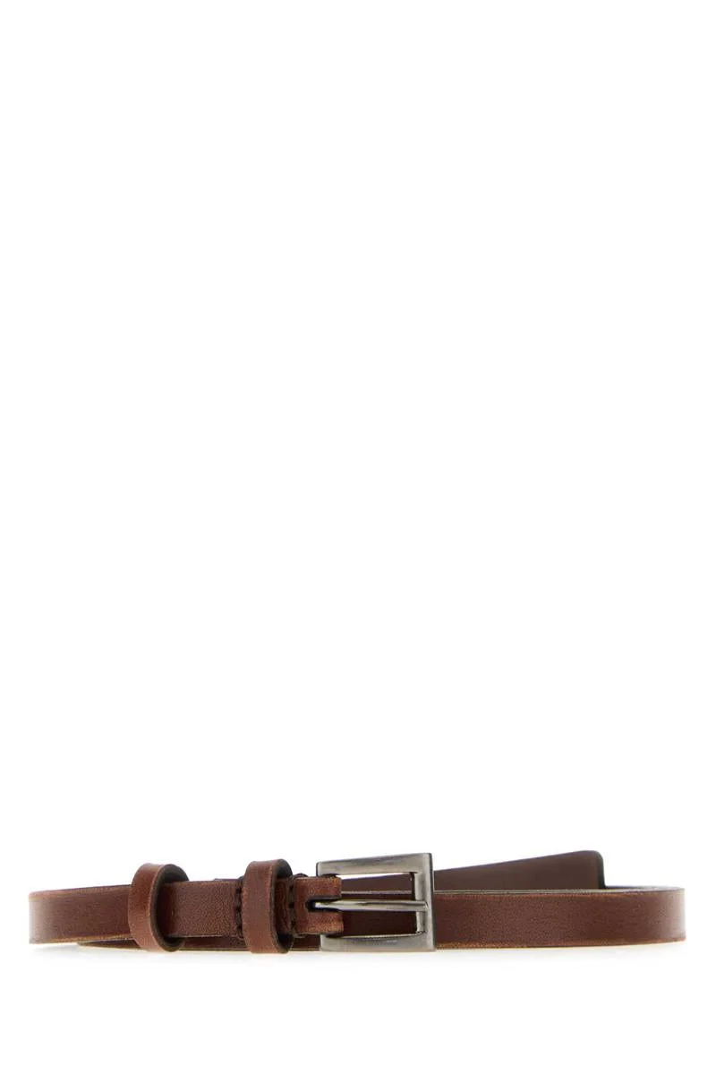 Brown leather belt Height: 1 cm Gender: Women Material: 100%CALF Color: BROWN Made in: Italy Product ID: 1CC695V69 F0324 *Import tax/duty will be calculated at checkout (If applicable)