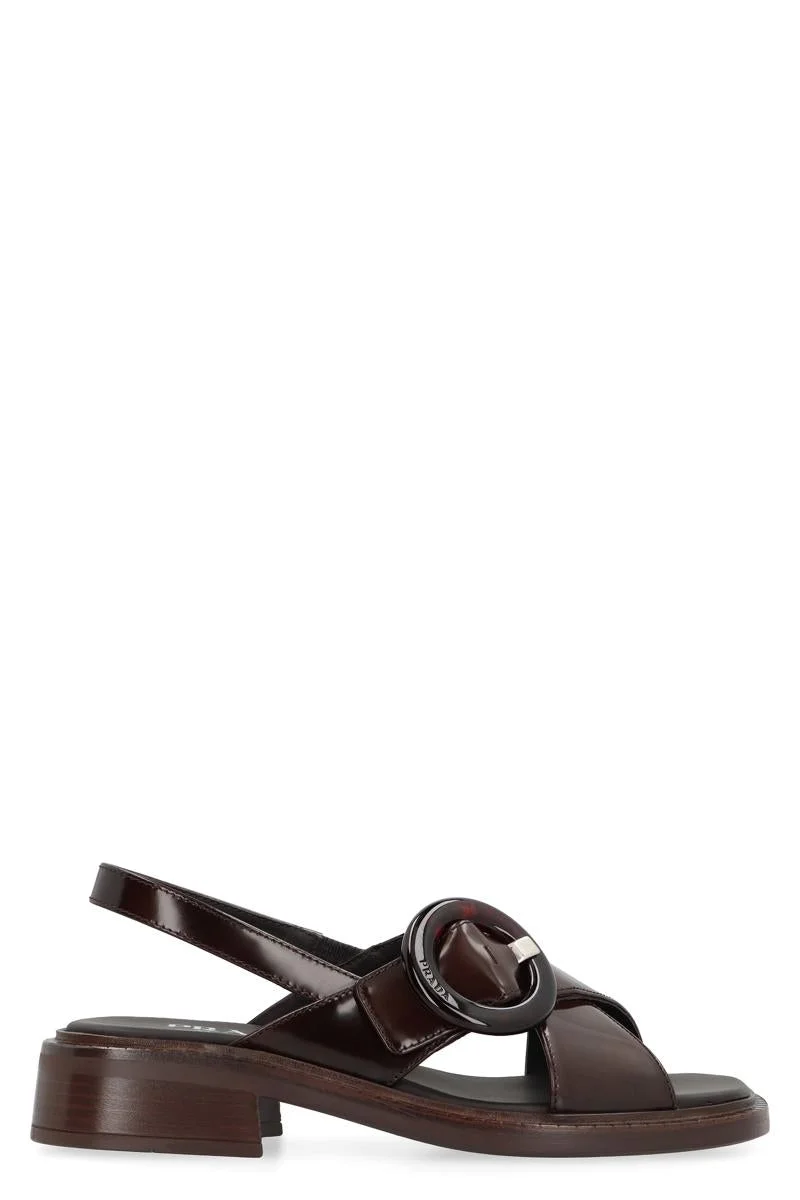 brushed leather sandals Smooth leather item Adjustable front strap with buckle Square toeline 100% Calf Gender: Women Material: CALF Color: BROWN Made in: Italy Product ID: 1X962NF035P39_F0038 *Import tax/duty will be calculated at checkout (If applicable)