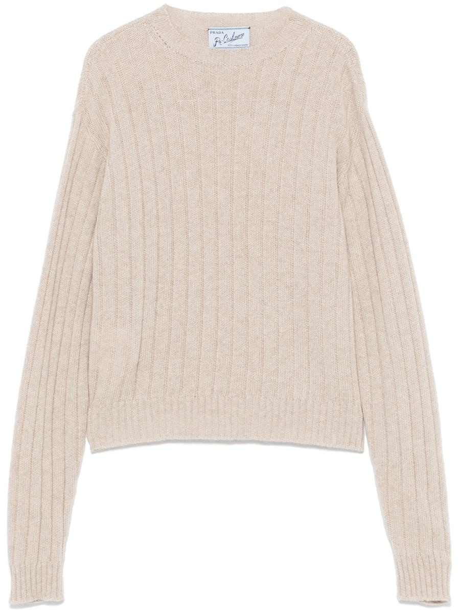 This soft and refined cropped sweater is made from reclaimed cashmere, a fine and sustainable material. The casual design is embellished with ribbed detailing and a tone-on-tone triangle logo, giving a distinctive touch to the modern silhouette. Gender: Women Material: CASHMERE | 100% CASHMERE Color: Beige Made in: Imported Product ID: P24H2O 15R1_F0036 SABBIA *Import tax/duty will be calculated at checkout (If applicable)
