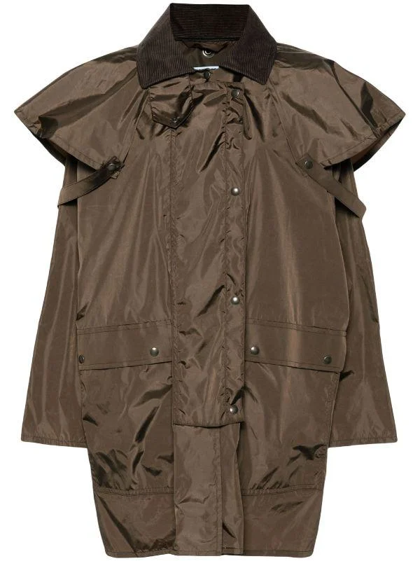 Highlights coffee brown corduroy collar long sleeves press-stud fastening cuffs two side slit pockets two front flap pockets storm flap enamel triangle logo buttoned central rear vent unlined concealed double press-stud fastening Gender: Women Material: 100%POLYAMIDE Color: MORO Made in: Imported Product ID: 29C195SOOO148U F0003 MORO *Import tax/duty will be calculated at checkout (If applicable)