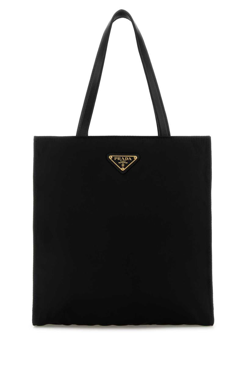 Black canvas shopping bag Width: 25 cm Height: 26 cm Depth: 10 cm Handle height: 17 cm Min shoulder strap length: 37 cm Max shoulder strap length: 50 cm Gender: Women Material: 100%RECYCLEDPOLYAMIDE-100%LAMBLEATHER Color: Black Made in: Italy Product ID: 1BG426VDOORUKW F0002 *Import tax/duty will be calculated at checkout (If applicable)