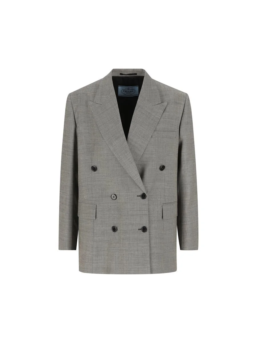 - Material: 100% wool - Color: gray - Lining: 100% viscose - Other details: back slits, peaked lapels, fabric triangle logo and three-button sleeves - Front button closure - Item code: P541P16VEF0480 Gender: Women Material: 100%WOOL Color: GRAY Made in: IT Product ID: P541P16VEF0480_P25 *Import tax/duty will be calculated at checkout (If applicable)