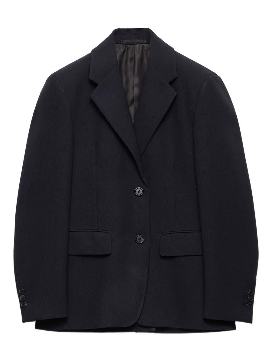 Prada Blue jacket, peak lapels, front button closure, flap pockets, back vent, wool fabric Gender: Women Material: 100%VIRGIN WOOL Color: BLUE Made in: Italy Product ID: P570PSOOO17VZF0008 *Import tax/duty will be calculated at checkout (If applicable)