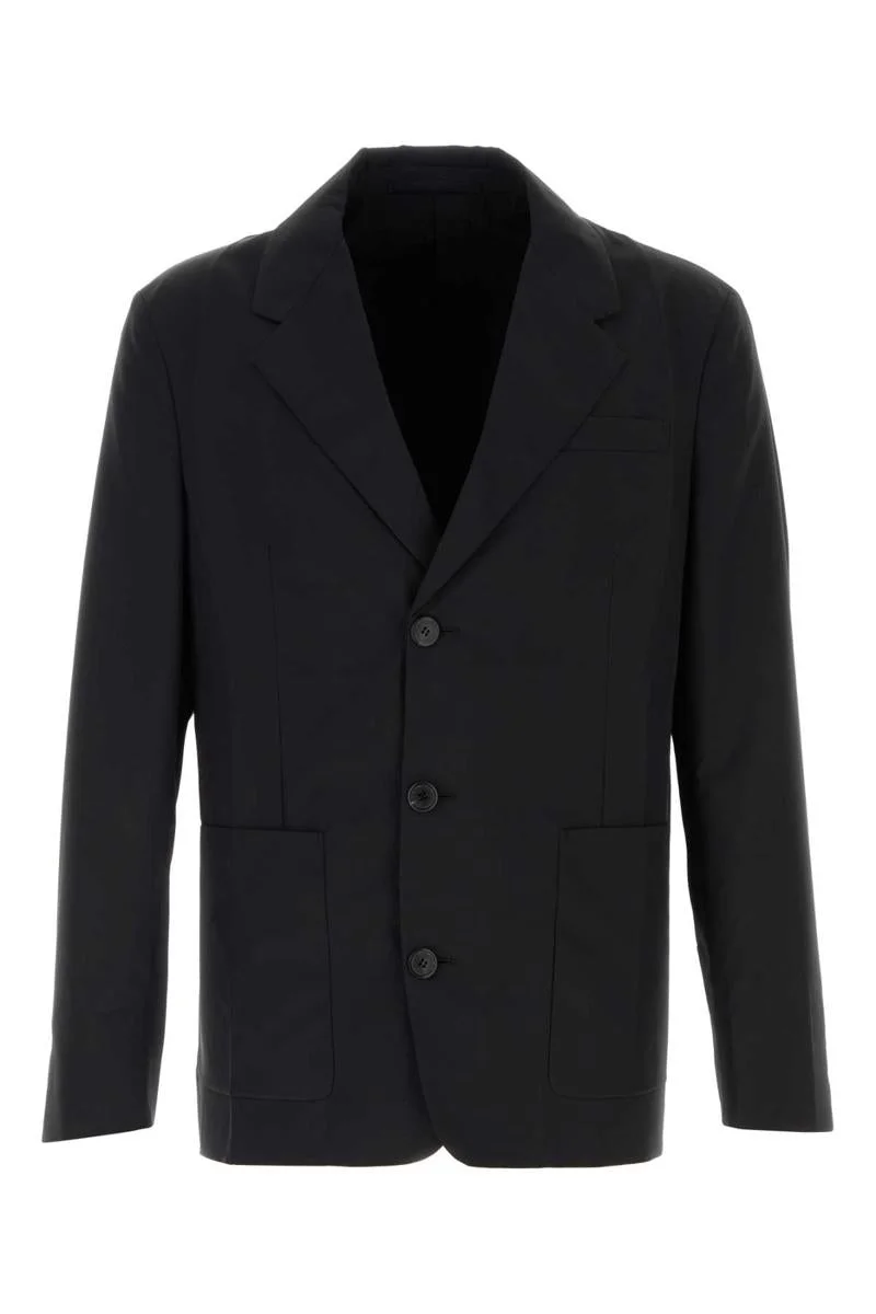 Black wool blend blazer Gender: Men Material: EXTERIOR: 64% VIRGIN WOOL 36% NYLON LINING: 64% VIRGIN WOOL 36% NYLON Color: Black Made in: IT Product ID: UGM334SOOO13L5 F0002 *Import tax/duty will be calculated at checkout (If applicable)
