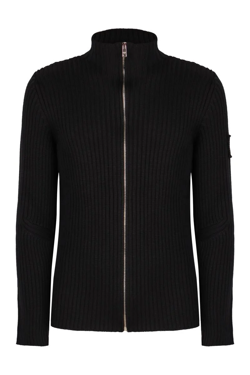 VIRGIN WOOL CARDIGAN FROM PRADA FEATURING A HIGH NECK, A FRONT ZIPPER FASTENING, AN ICONIC BRAND MONOGRAM PATCH, AN ALL-OVER RIBBED DESIGN, A MONOCHROME PATTERN, A REGULAR FIT. Gender: MEN Material: FLEECE WOOL Color: Black Made in: Imported Product ID: UMG355SOOO15O6_F0002 *Import tax/duty will be calculated at checkout (If applicable)